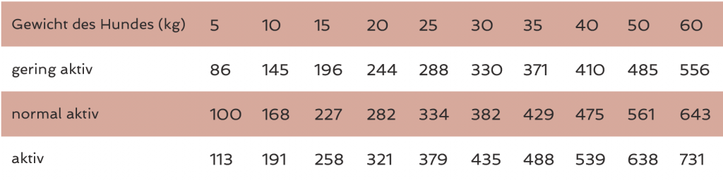 Die empfohlenen Mengen sind Richtwerte, die an die individuellen Bedürfnisse des Hundes angepasst werden sollten.
