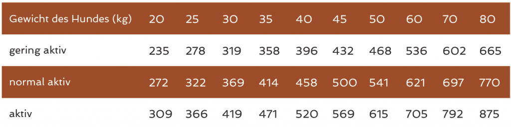Die empfohlenen Mengen sind Richtwerte, die an die individuellen Bedürfnisse des Hundes angepasst werden sollten.