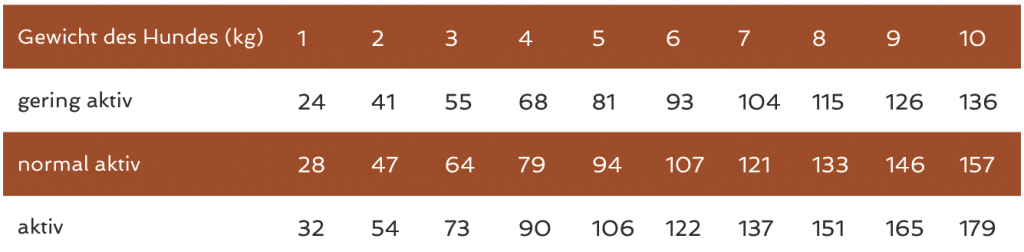 Die empfohlenen Mengen sind Richtwerte, die an die individuellen Bedürfnisse des Hundes angepasst werden sollten.