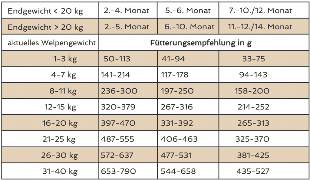 Die empfohlenen Mengen sind Richtwerte, die an die individuellen Bedürfnisse des Hundes angepasst werden sollten.