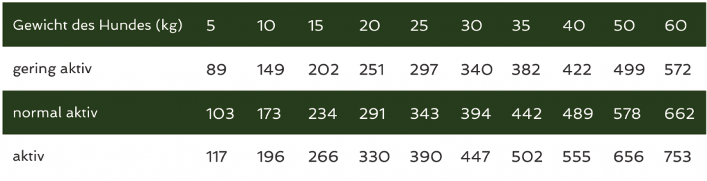 Die empfohlenen Mengen sind Richtwerte, die an die individuellen Bedürfnisse des Hundes angepasst werden sollten.