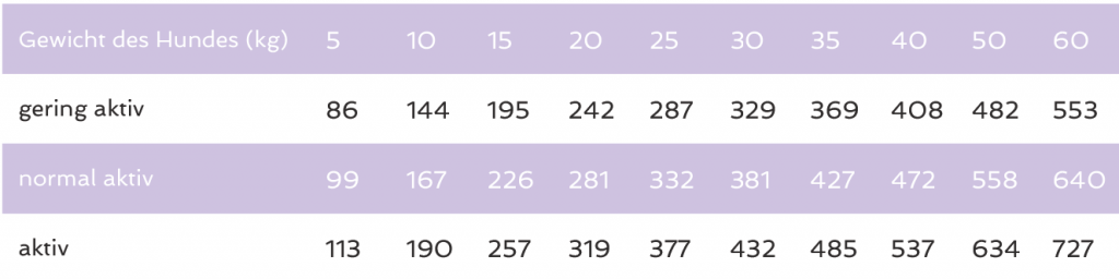 Die empfohlenen Mengen sind Richtwerte, die an die individuellen Bedürfnisse des Hundes angepasst werden sollten.